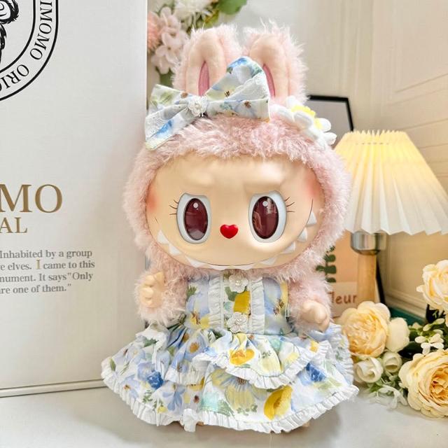 桃甜也精選好物 38cm拉布布搪膠毛絨娃娃衣服Labubu公仔MOKOKO甜心粉愛心挎包裙萌