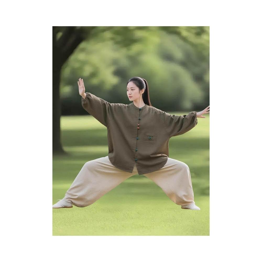桃甜也精選好物 八段錦練功服女秋季新款棉麻套裝禪意佛系女裝女士太極拳太極服女2