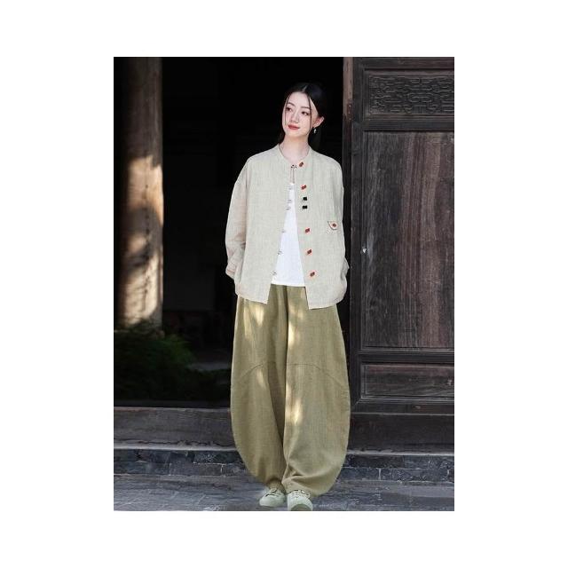 桃甜也精選好物 八段錦練功服女秋季新款棉麻套裝禪意佛系女裝女士太極拳太極服女2