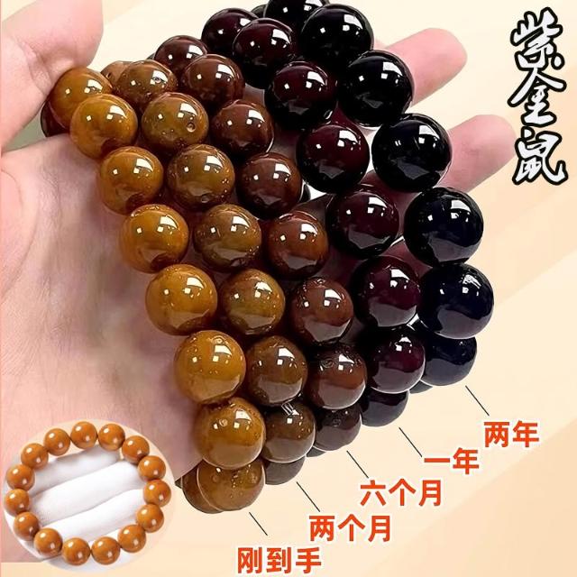 桃甜也精選好物 紫金鼠菩提手串光珠圓珠男實心籽繞指柔文玩佛珠菩提子盤玩原籽女