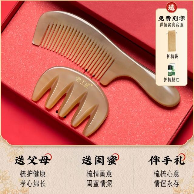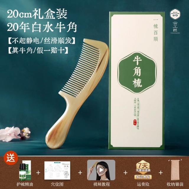 桃甜也精選好物 白水牛角梳子官方旗艦店天然真正品宗梳頭靜電男女士專用家