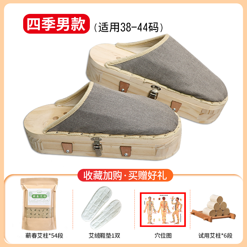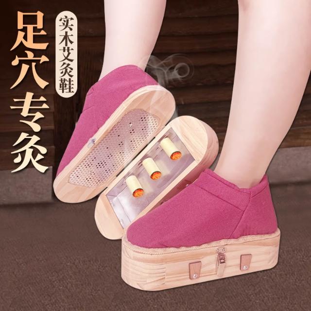 桃甜也精選好物 艾灸鞋足底實木家用可以行走養生男大號四季拖鞋器具燻腳底艾灸盒