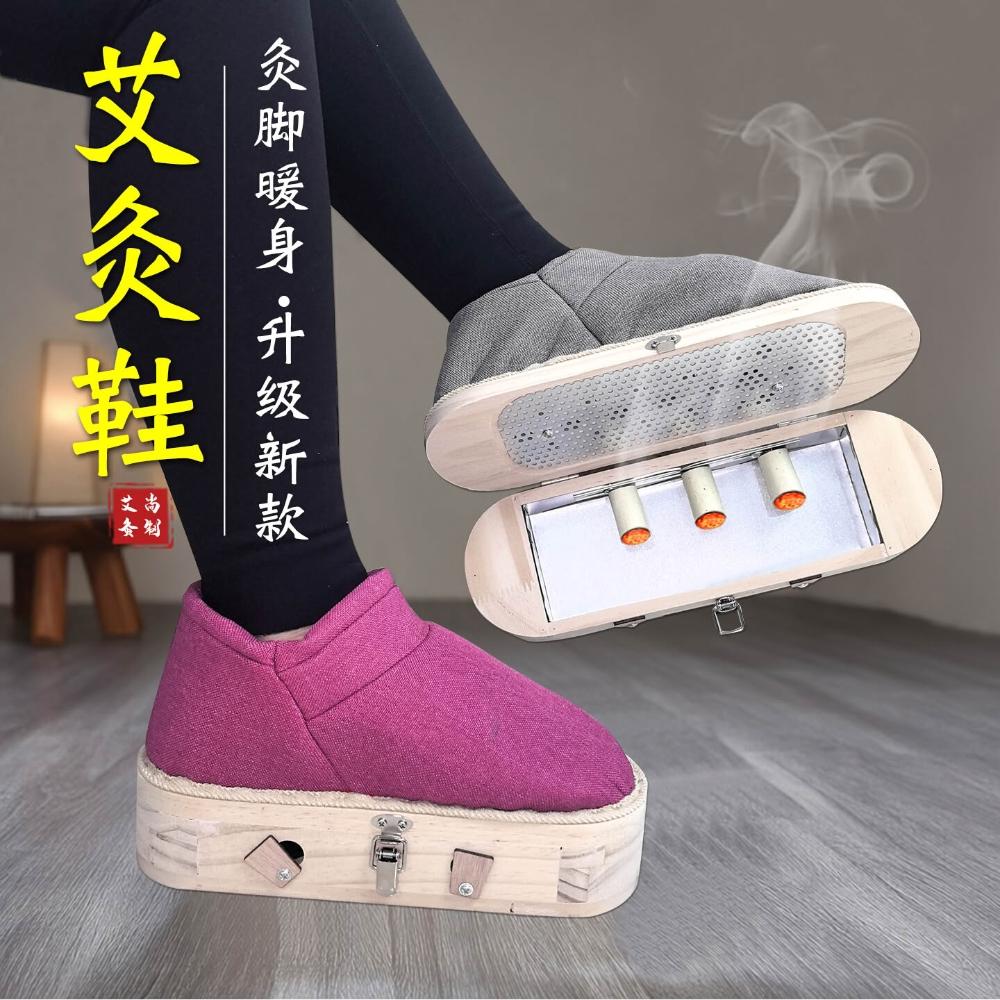 桃甜也精選好物 艾灸鞋足底實木家用可以行走養生男大號四季拖鞋器具燻腳底艾灸盒
