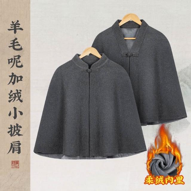 桃甜也精選好物 僧服冬季小披肩斗篷加絨男短觀音斗篷居士女打坐小披肩灰色立領