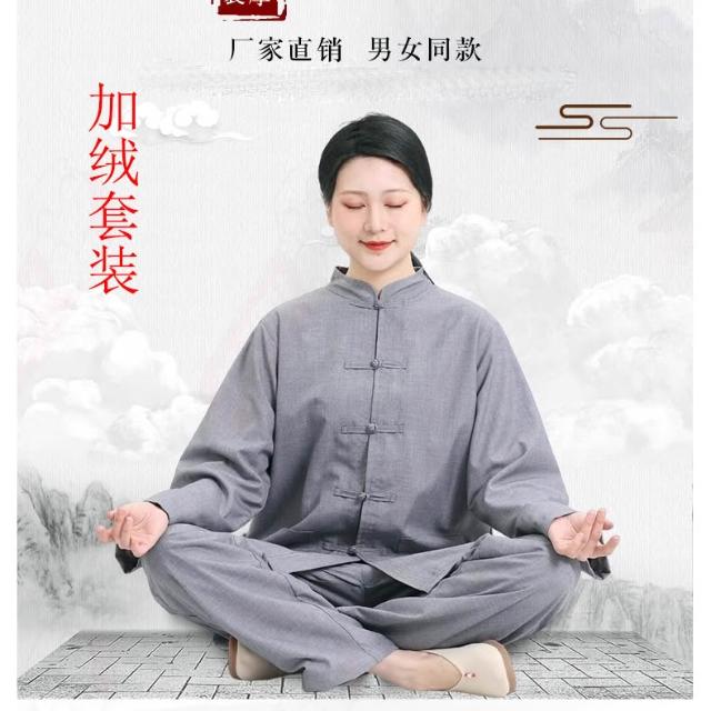 桃甜也精選好物 冬季僧服居士服套裝內裡加絨保暖禪修服裝唐裝漢服男女通用