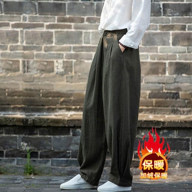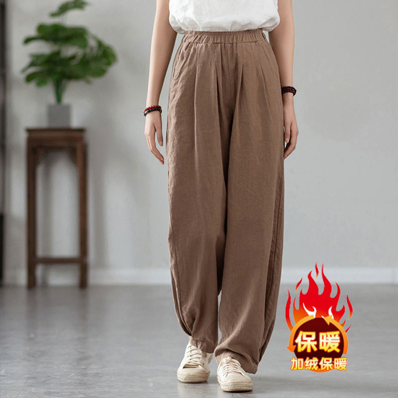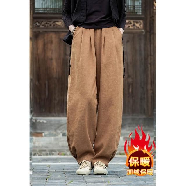 桃甜也精選好物 禪修褲女冬季加絨加厚棉麻燈籠褲寺院拜佛打坐佛系禪意女裝居士褲