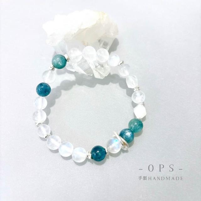 Ops手工飾品設計-月光石/ 純銀/ 藍綠晶/ 表達力/ 放鬆/ 療癒/ 舒壓/ 手鍊