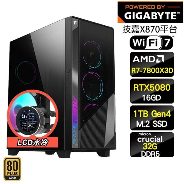技嘉平台R7八核RTX 5080{武神鷹}海景水冷電競機(R7-7800X3D/X870/32G D5/1T/WIFI)