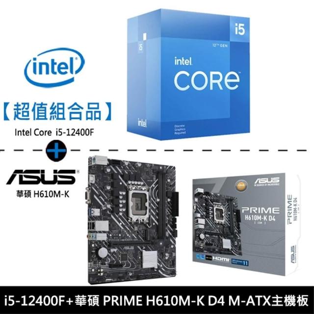Intel 英特爾(狂省價)i5-12400F處理器 + 華碩 PRIME H610M-K D4-CSM M-ATX主機板