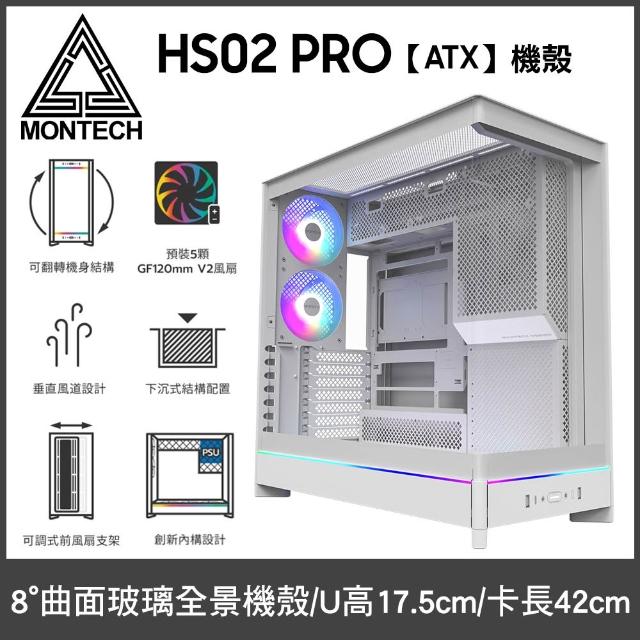 MONTECH君主 HS02 PRO 白 全景玻璃電腦機殼 (ATX/Type-C/內建風扇底3後2/支援背插主板/可翻轉式結構)