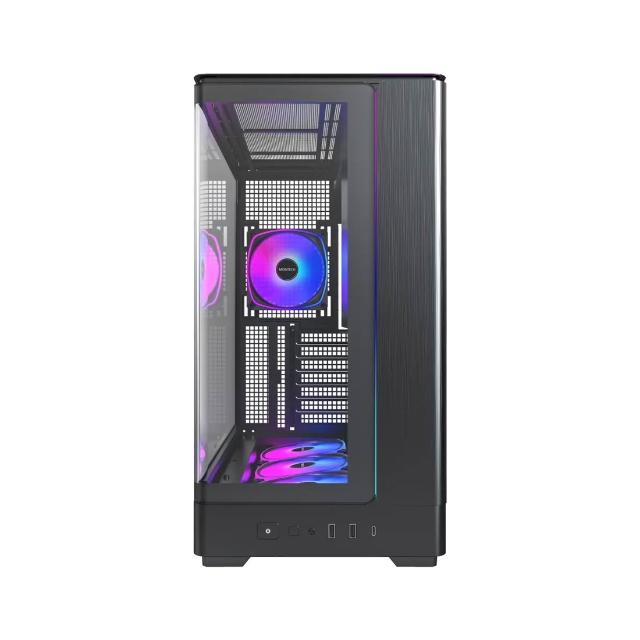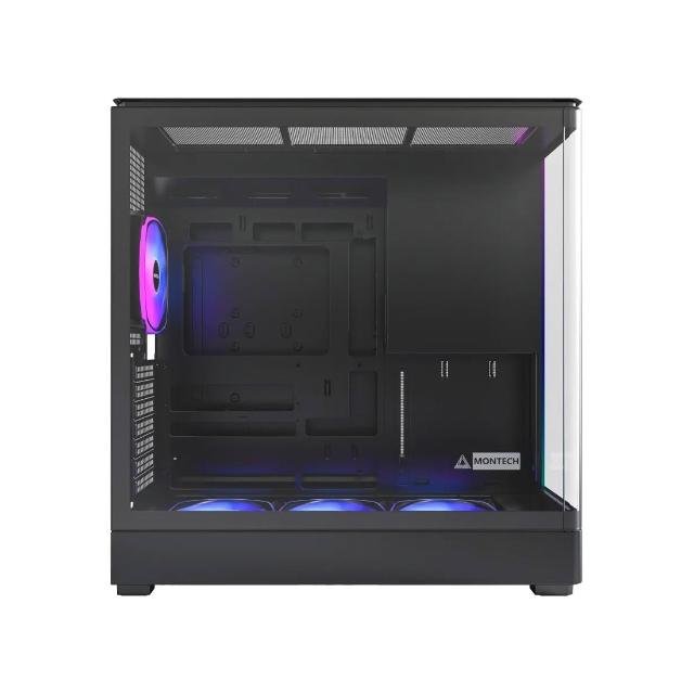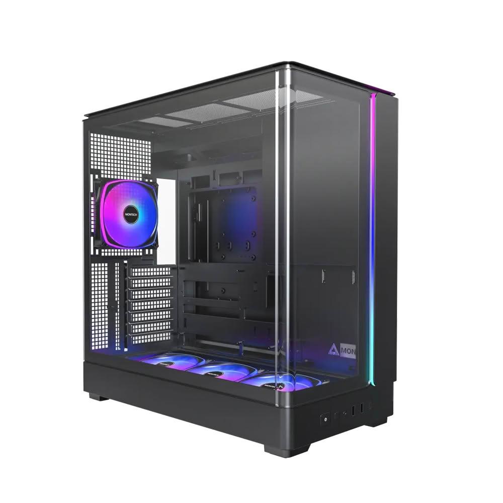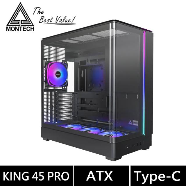 MONTECHKING 45 PRO 黑 全景機殼 (ATX/Type-C/內建風扇底3後1/曲面玻璃/ARGB燈光/斜角風扇設計)