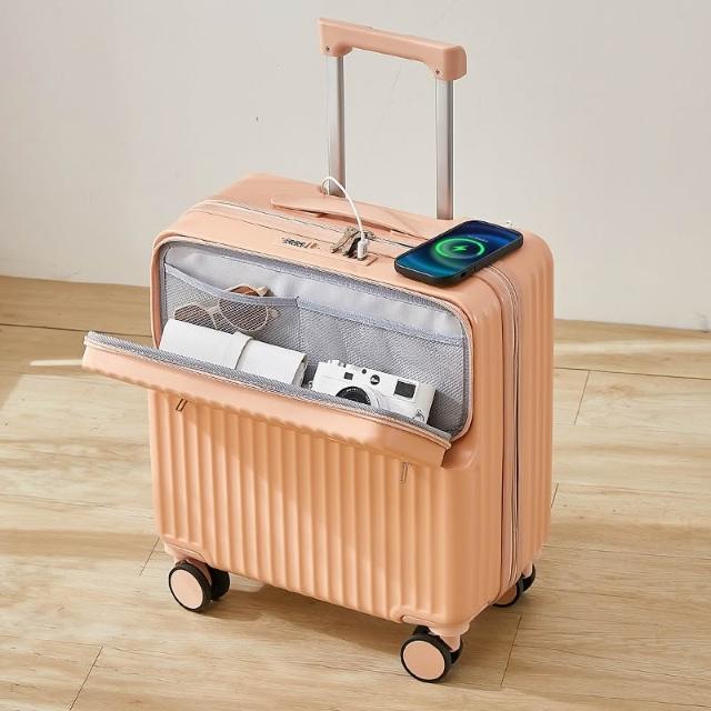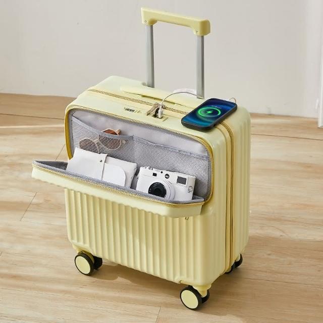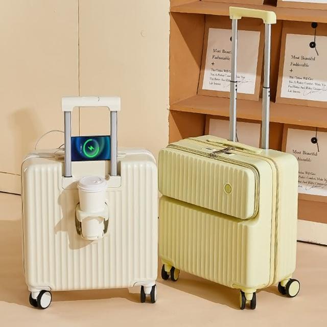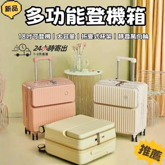 🔥高雄現貨🔥24H寄出🔥18吋登機行李箱 拉桿箱 萬向靜音輪 前開口旅行箱 大容量箱子 可登機 折疊式杯架 多色可選