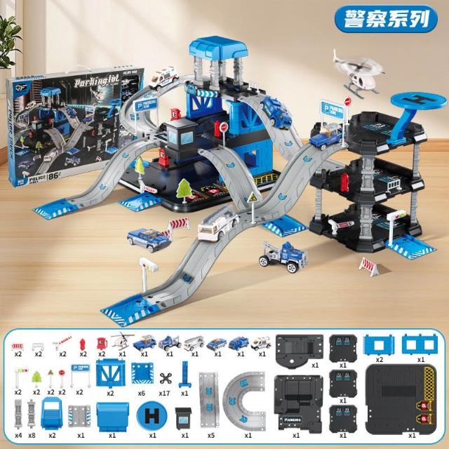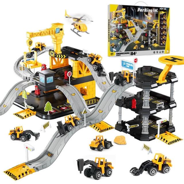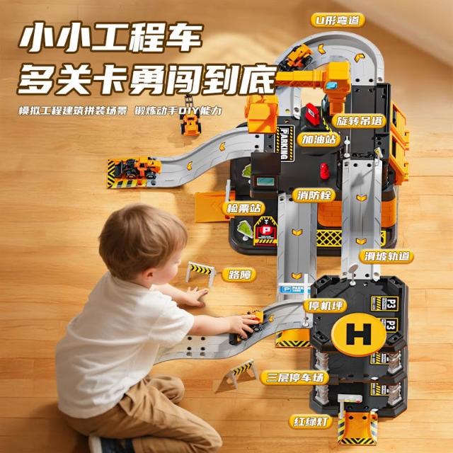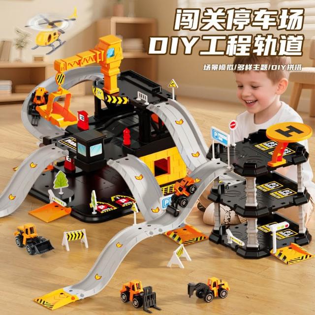 新款diy工程軌道車闖關大冒險兒童益智滑行小火車汽車大樓停車場
