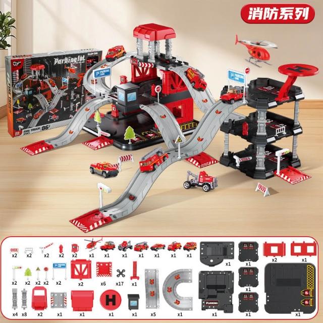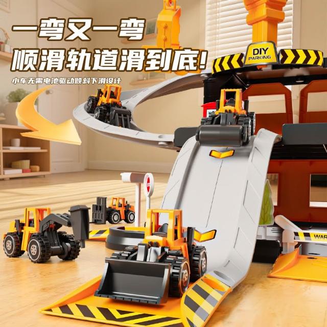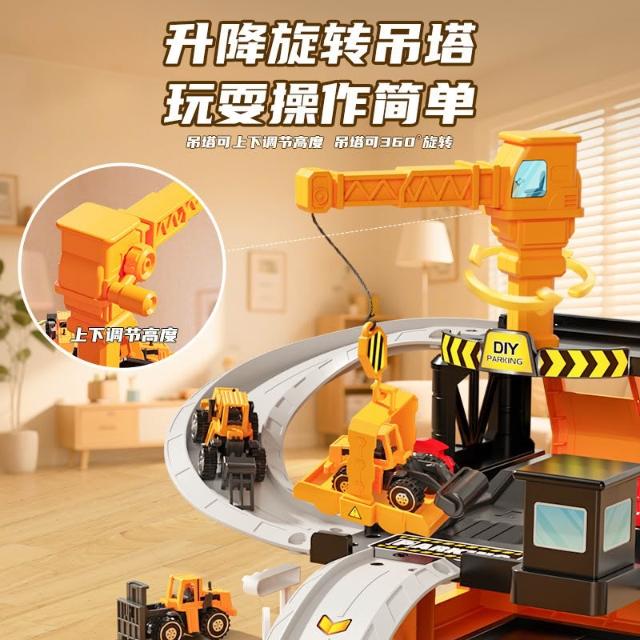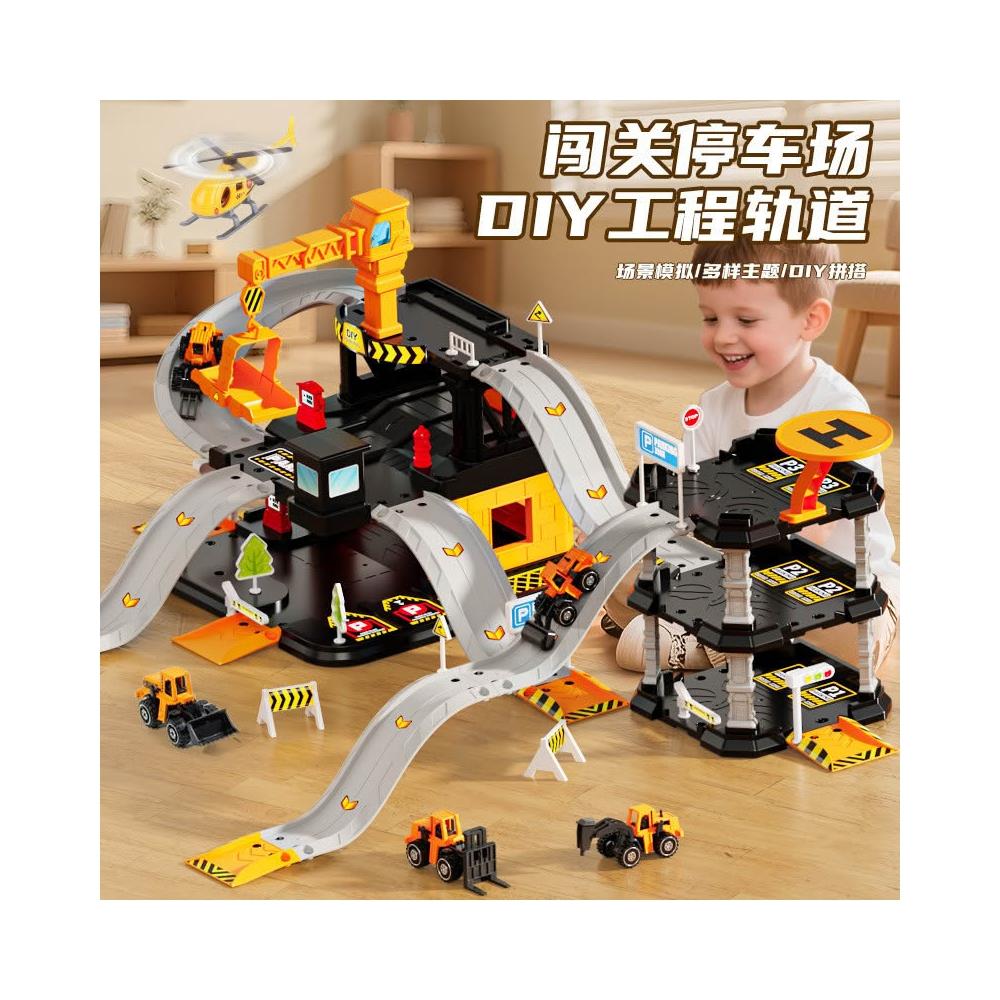 新款diy工程軌道車闖關大冒險兒童益智滑行小火車汽車大樓停車場