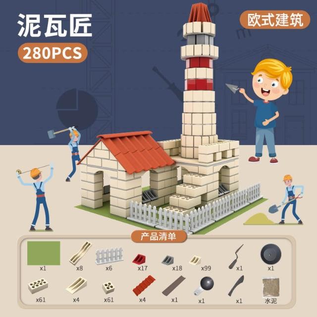 小小泥水匠手作diy小屋建築別墅模擬迷你磚塊組裝兒童蓋房子玩具