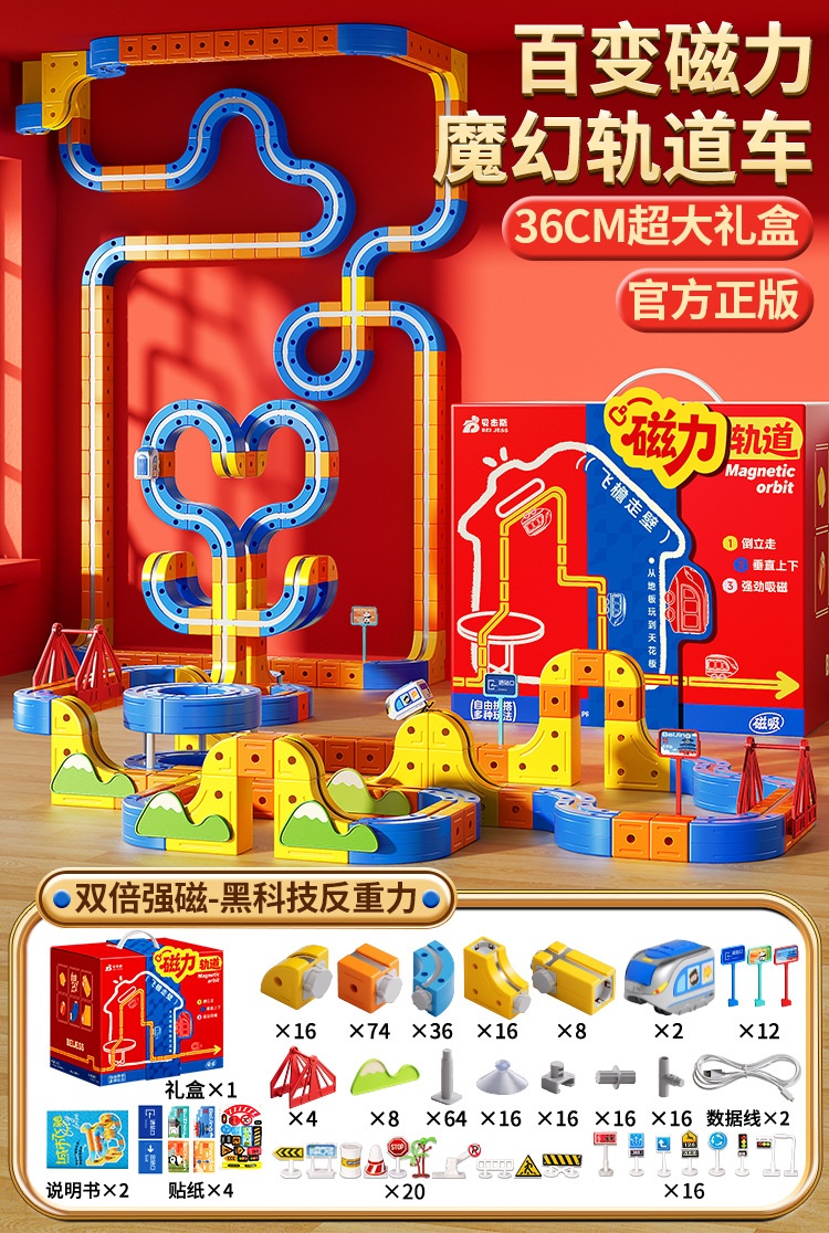 磁力車 磁吸 電動 拼裝 軌道車 DIY 積木 火車 玩具 男孩 女孩 生日禮物 兒童節禮物 磁性拼接軌道車