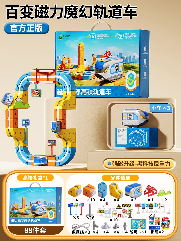磁力車 磁吸 電動 拼裝 軌道車 DIY 積木 火車 玩具 男孩 女孩 生日禮物 兒童節禮物 磁性拼接軌道車