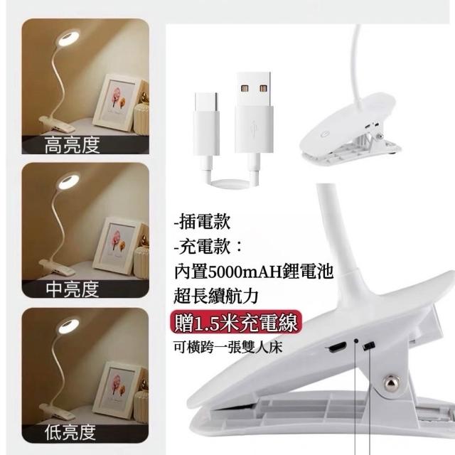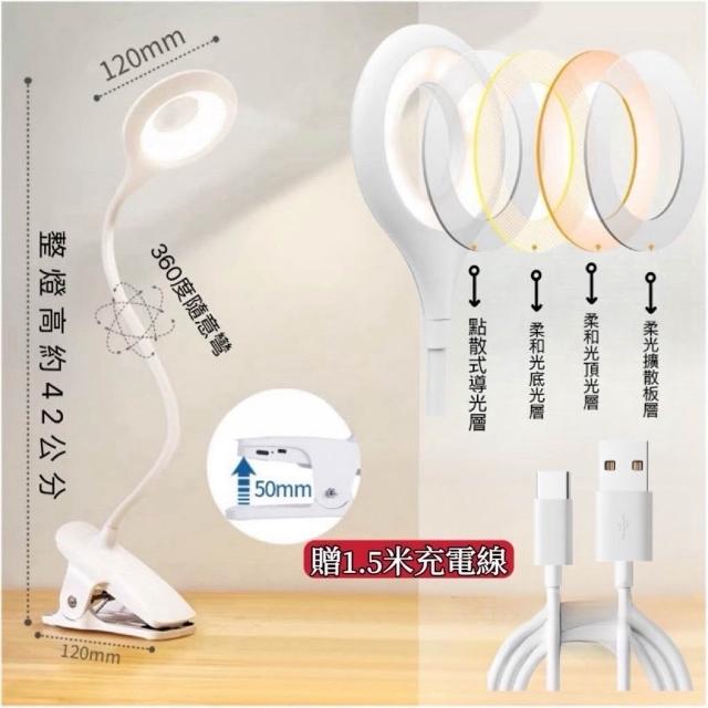 可夾式臺燈&台灣保固臺燈 LED便攜式夾式燈 三段調光 環形充電 夾式站式臺燈 USB充電臺燈 護眼臺燈 書桌臺