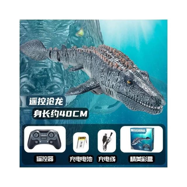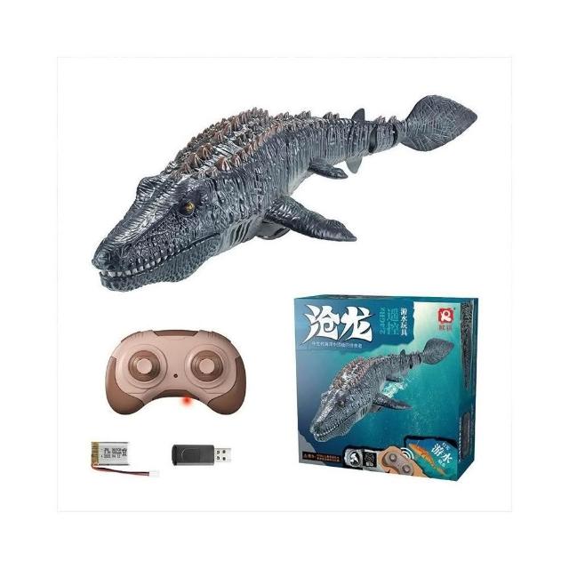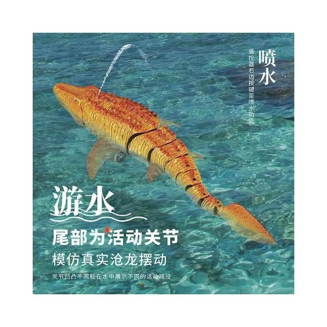 新款遙控滄龍仿真恐龍燈光噴水可擺尾游泳兒童水上遙控魚玩具