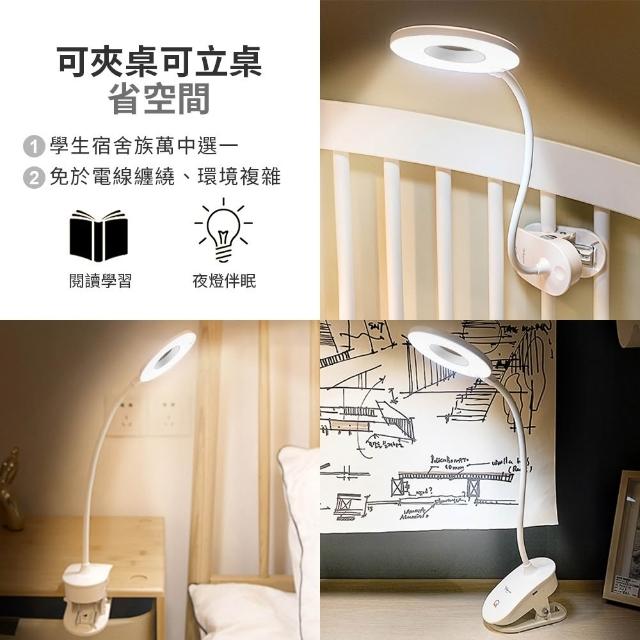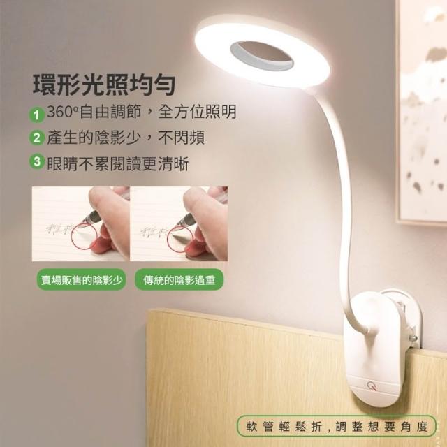 夾式護眼檯燈 護眼檯燈 環形檯燈 LED檯燈 充電式 夾式燈 床頭燈 書桌檯燈 檯燈