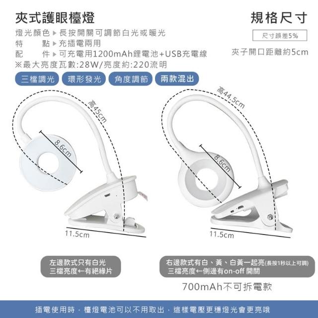 夾式護眼檯燈 護眼檯燈 環形檯燈 LED檯燈 充電式 夾式燈 床頭燈 書桌檯燈 檯燈