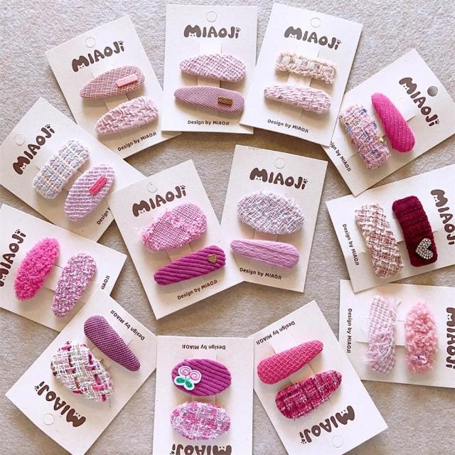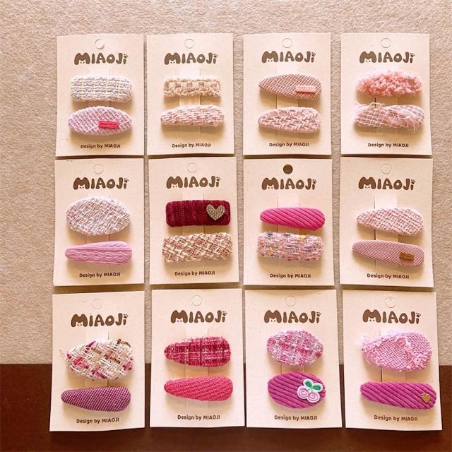 粉紅布幾何BB夾 女童 側邊 瀏海夾 格紋髮夾 2個裝 d0103 圓夢寶飾