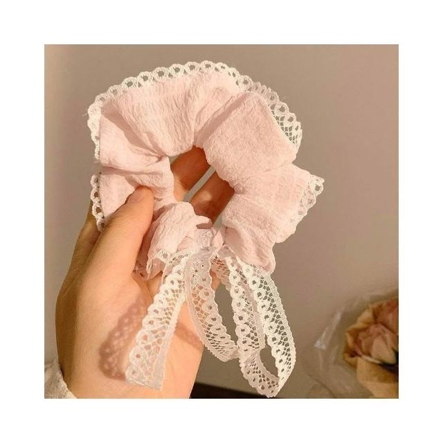 韓系溫柔蝴蝶結大腸髮圈 粉色絲帶 蕾絲飄帶 髮繩 髮飾 蝴蝶結髮圈 大腸圈 髮束 D05 圓夢寶飾