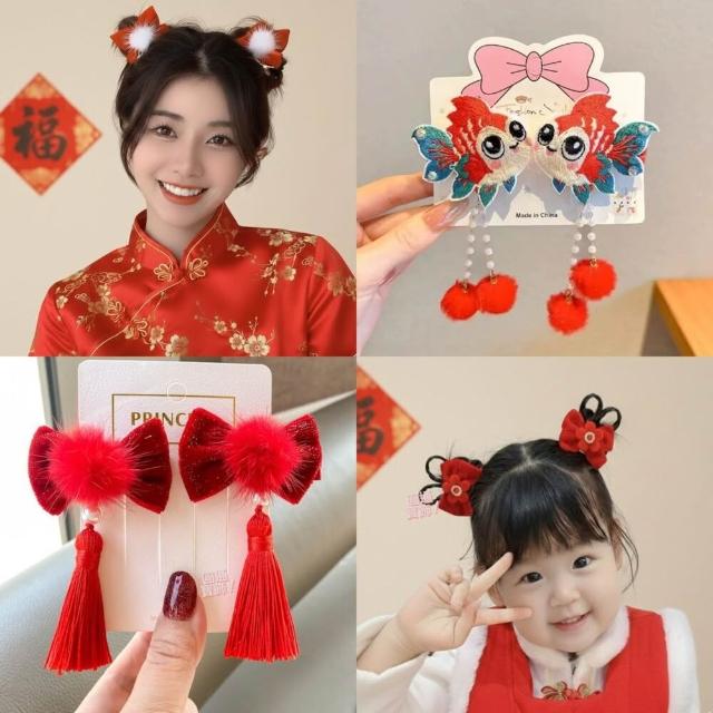 發票* 台灣現貨 流蘇髮夾 兒童髮飾 髮夾 髮圈 新年頭飾 聖誕老公公 新年髮飾 恭喜發財 A010