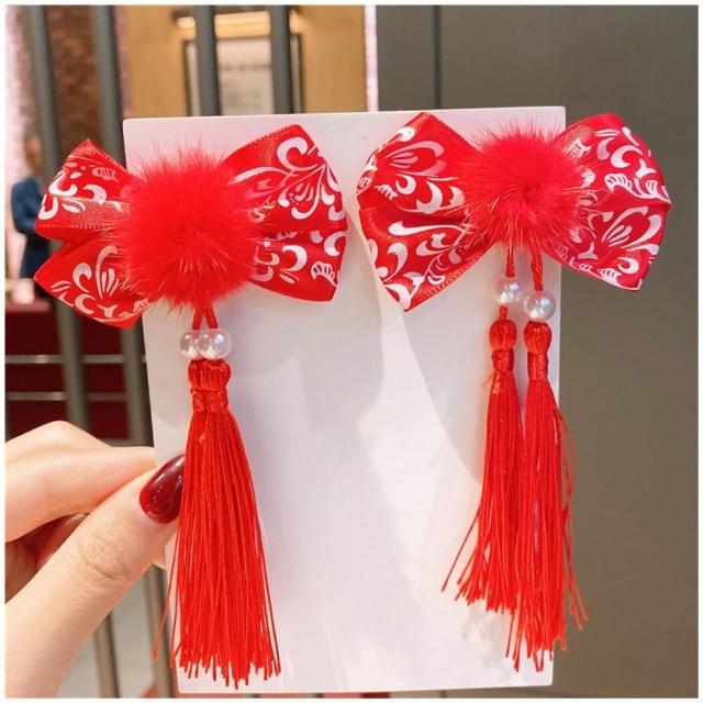 發票* 台灣現貨 流蘇髮夾 兒童髮飾 髮夾 髮圈 新年頭飾 聖誕老公公 新年髮飾 恭喜發財 A010