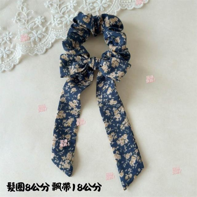 碎花布藝馬尾飄帶髮圈 蝴蝶結 高彈性 大腸髮圈 髮束 髮飾 d05b 圓通寶飾