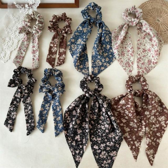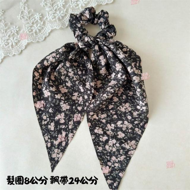 碎花布藝馬尾飄帶髮圈 蝴蝶結 高彈性 大腸髮圈 髮束 髮飾 d05b 圓通寶飾