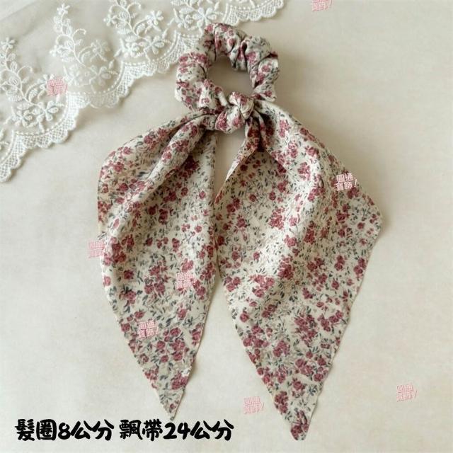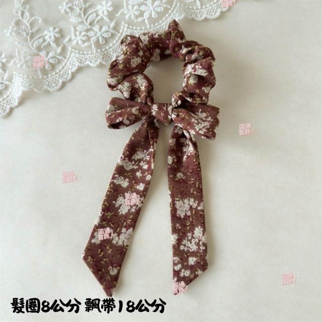 碎花布藝馬尾飄帶髮圈 蝴蝶結 高彈性 大腸髮圈 髮束 髮飾 d05b 圓通寶飾