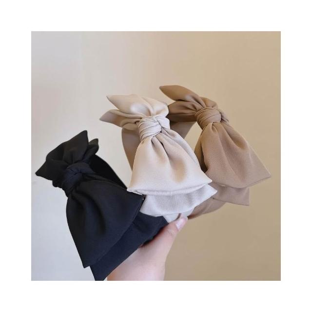 Hana飾集 純色雙層蝴蝶結髮箍 寬邊髮箍 復古髮箍 髮箍 蝴蝶結髮箍