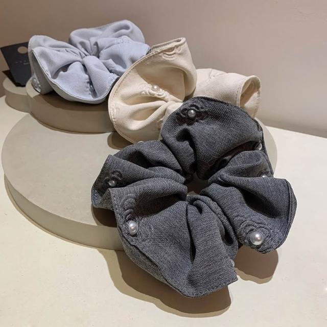Hana飾集 甜美氣質印花珍珠大腸髮圈 髮圈 大腸髮圈