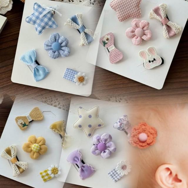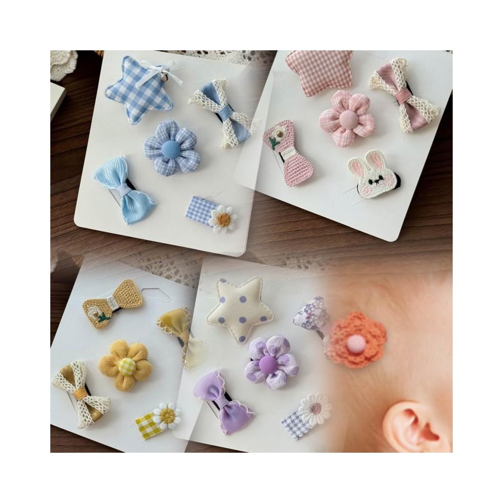 Hana飾集 可愛塗鴉蝴蝶結布藝汗毛夾 寶寶少量頭髮專用 寶寶髮夾 寶寶髮飾 寶寶汗毛夾