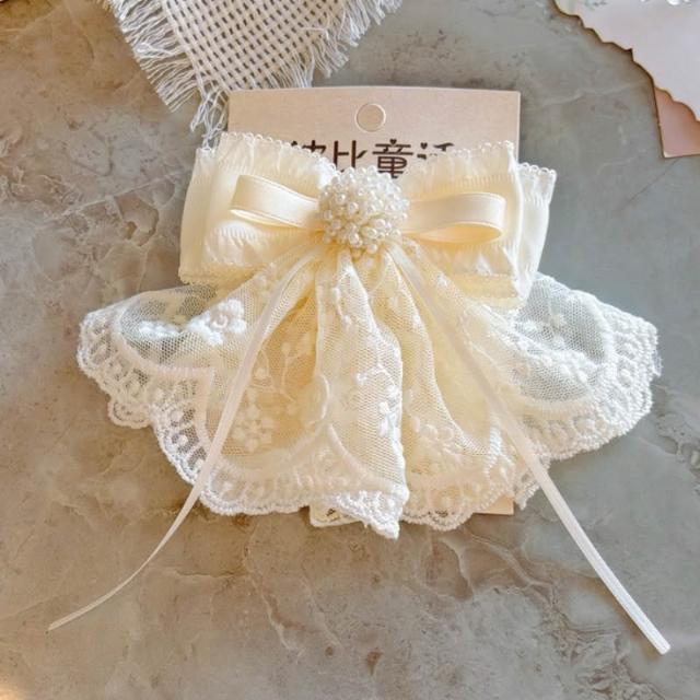 Hana飾集 法式浪漫嫩黃蕾絲蝴蝶結 兒童髮夾 鴨嘴髮夾