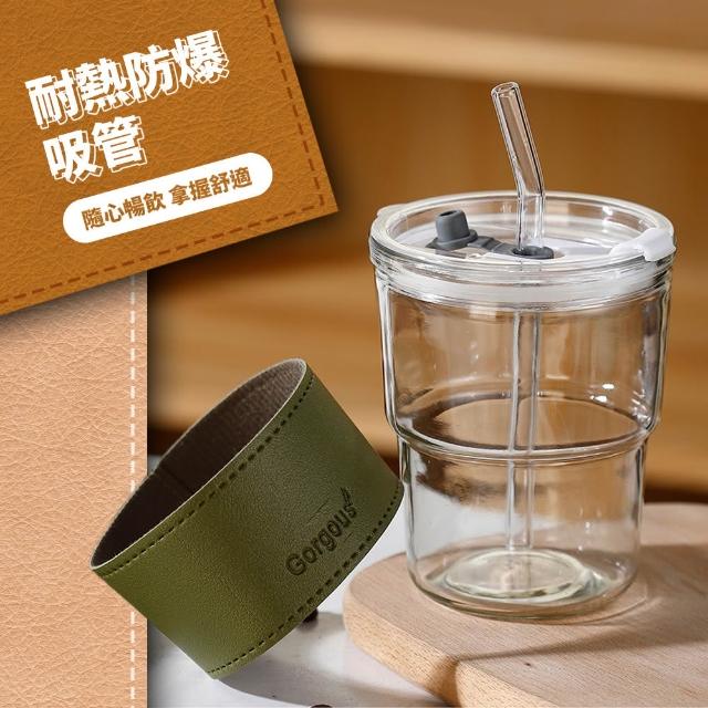 VOGUE LIFE竹節玻璃杯 400ML 玻璃吸管杯 玻璃隨行杯 玻璃環保杯 吸管玻璃杯 竹節杯 玻璃杯 咖啡杯 吸管杯 杯子