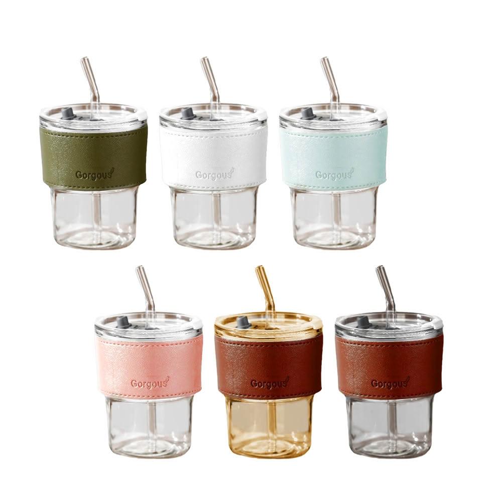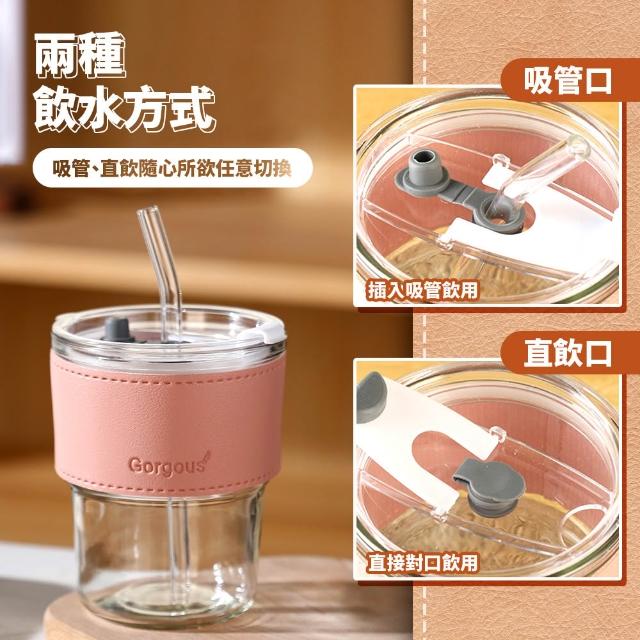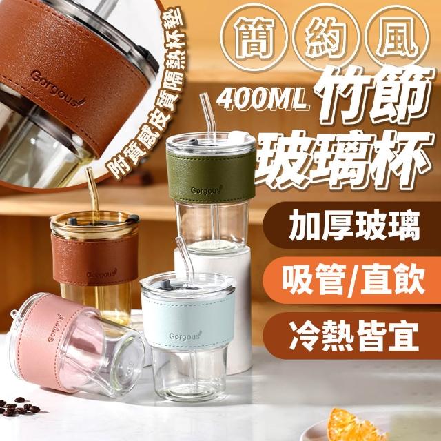 VOGUE LIFE竹節玻璃杯 400ML 玻璃吸管杯 玻璃隨行杯 玻璃環保杯 吸管玻璃杯 竹節杯 玻璃杯 咖啡杯 吸管杯 杯子