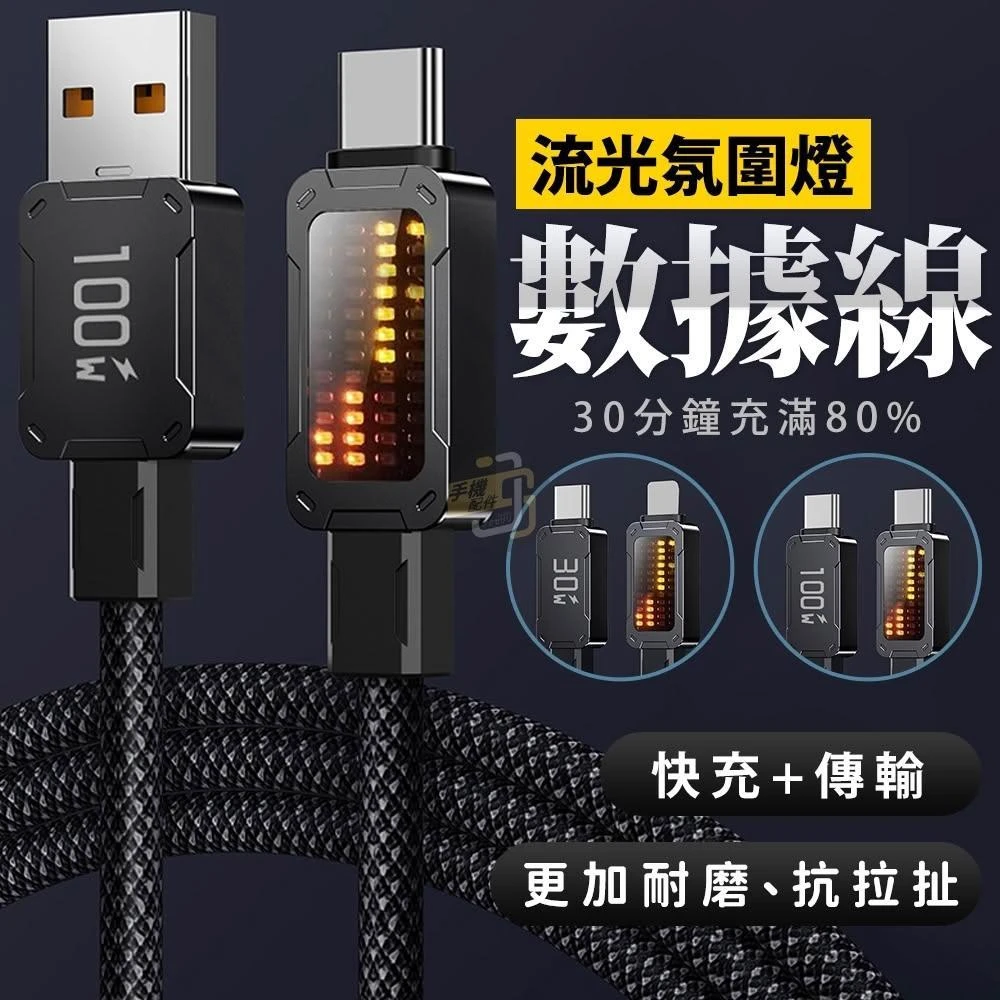 JS購物 流光氛圍燈數據線 type c 30分鐘充80% PD充電線 車載快充 Type C 傳輸線 適用於蘋果安卓