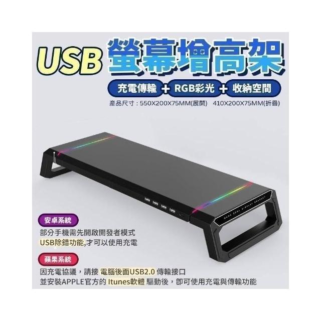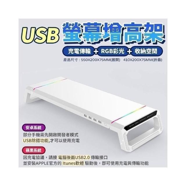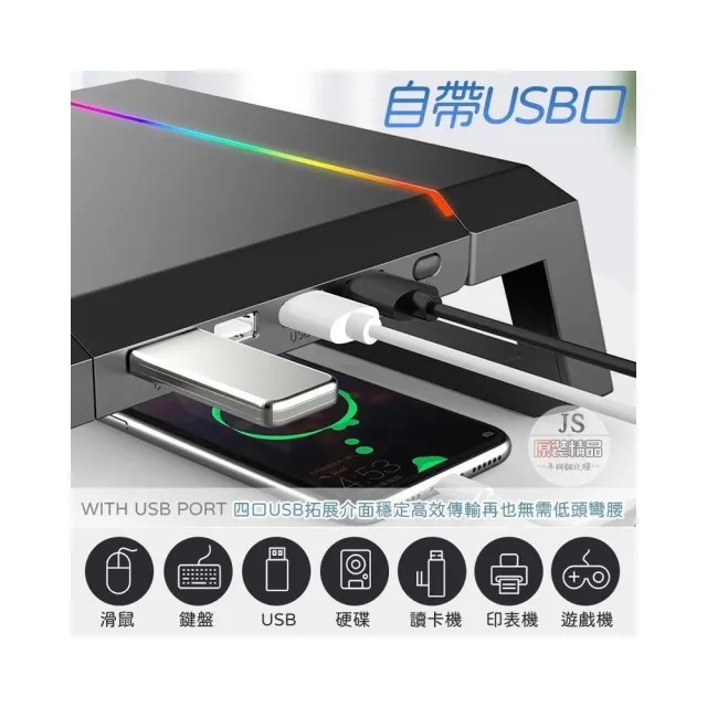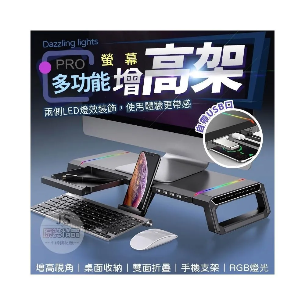 JS購物 螢幕架 多功能螢幕增高架 USB充電傳輸 RGB 螢幕支架 電腦螢幕架 鍵盤架 電腦螢幕增高架 螢幕收納架