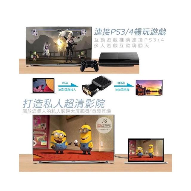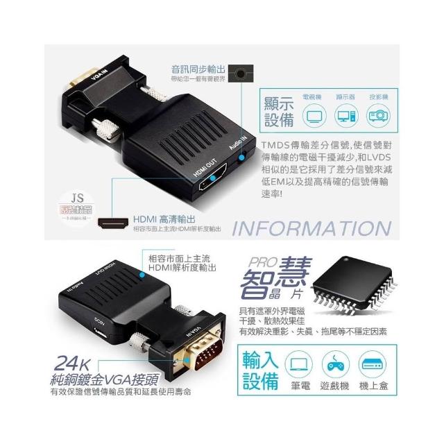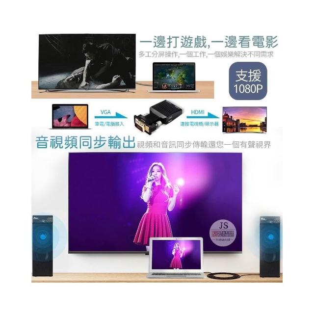 JS購物 台灣出貨 VGA 轉 HDMI 附音源線電源線 含聲音輸出 1080P 轉換 轉換頭 轉接器 高清轉接頭