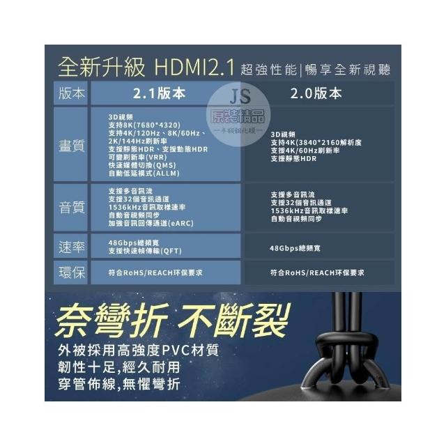 JS購物 hdmi 2.1 8K HDMI線 HDMI2.0 高清線 適用於電腦螢幕 電視 投影機 hdmi電視 電腦