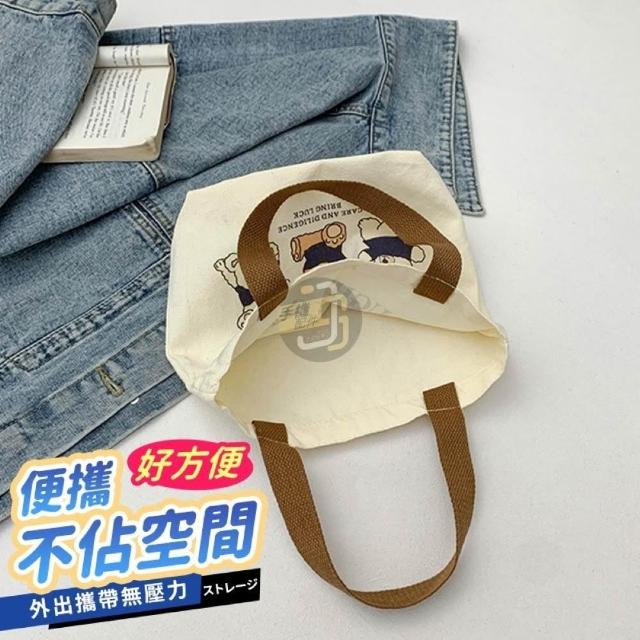 JS購物 手提式小熊收納袋 手提帆布袋 小熊帆布袋 購物袋 便當袋 野餐袋 手提袋 帆布包 小熊 可愛 迷你手袋