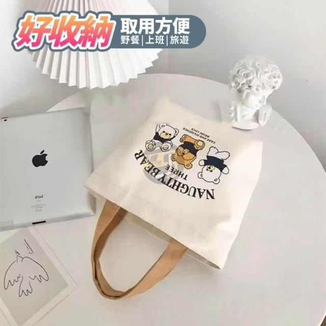 JS購物 手提式小熊收納袋 手提帆布袋 小熊帆布袋 購物袋 便當袋 野餐袋 手提袋 帆布包 小熊 可愛 迷你手袋