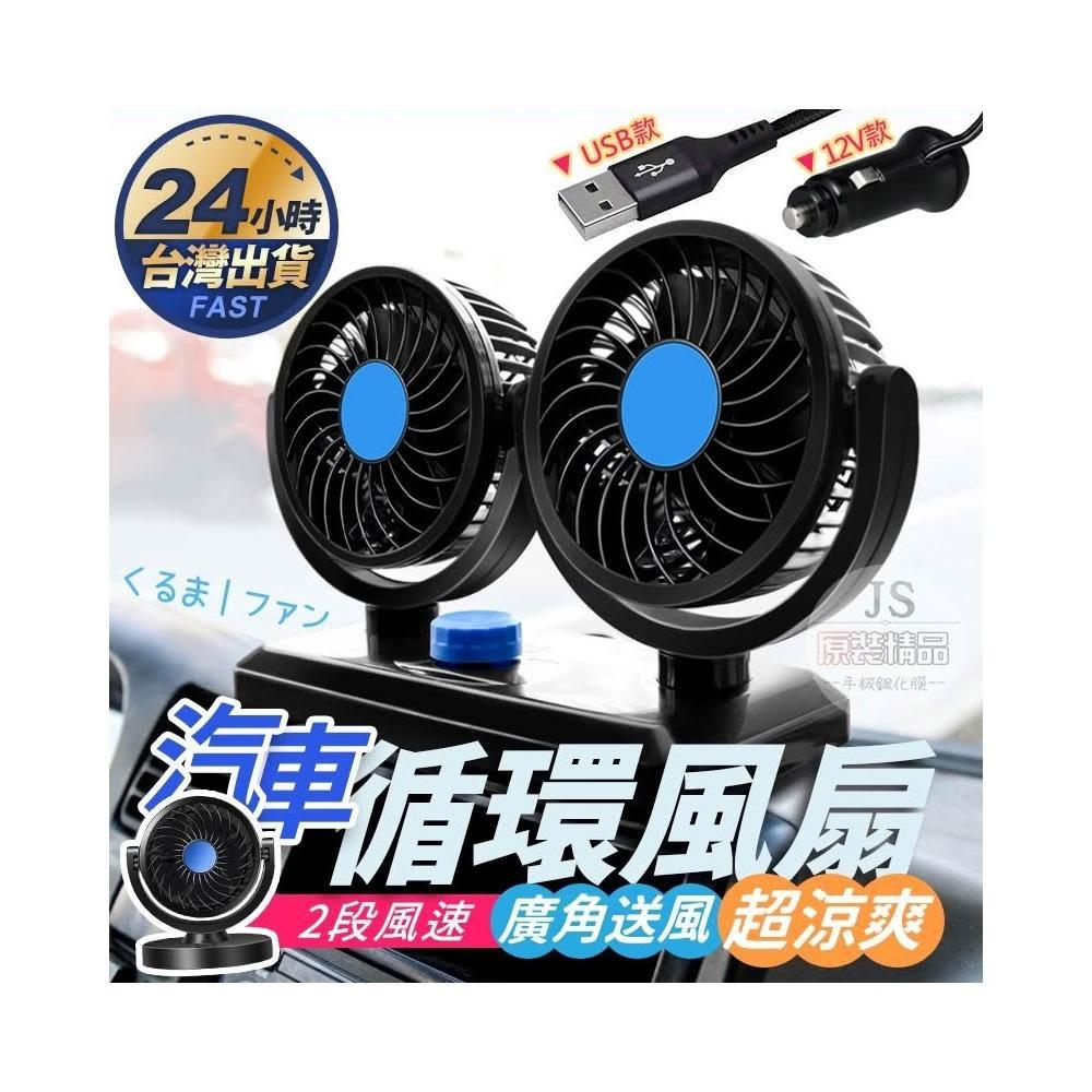 JS購物 汽車風扇 車用風扇 360度旋轉 汽車雙頭風扇 雙頭風扇 循環風扇 貨車電扇 12V/24V/USB