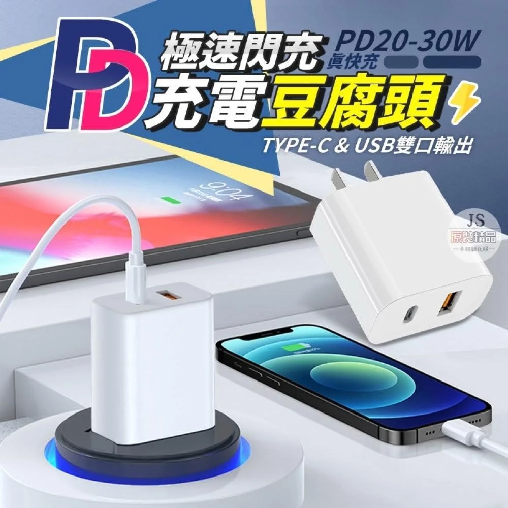 JS購物 PD快充頭 typec USB 充電器 充電頭 Type-C USB-C 豆腐頭 快充頭 適用蘋果安卓