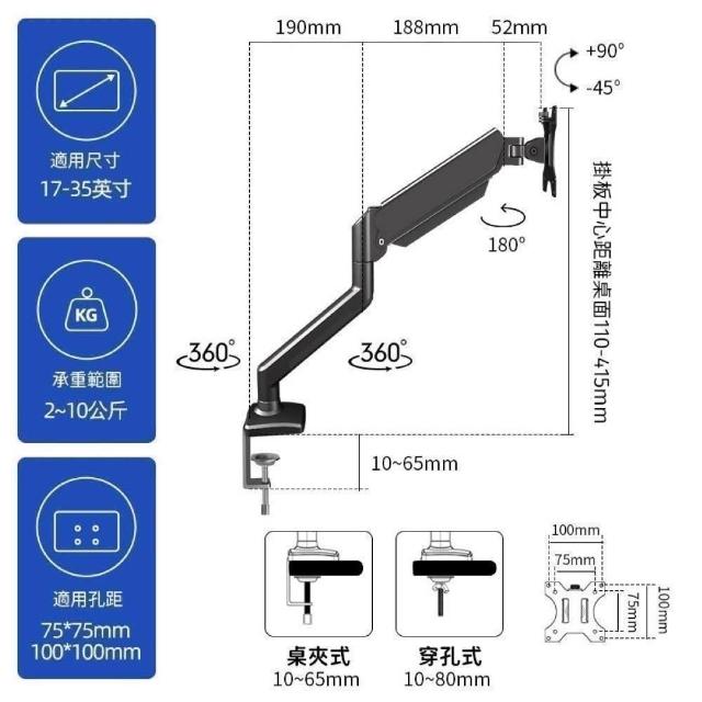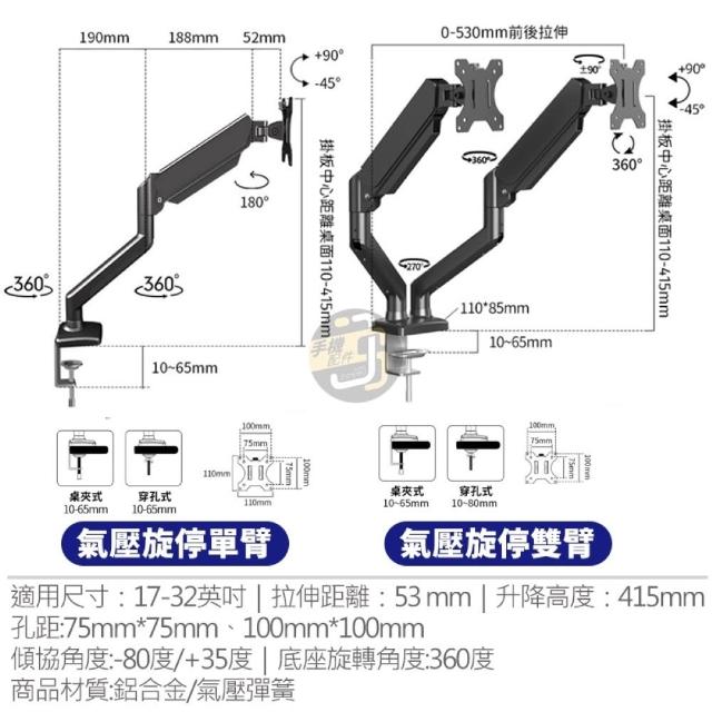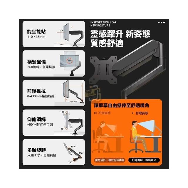 JS購物 電腦螢幕支架 氣壓式桌上型手臂支架 液晶螢幕支架 氣壓式支架 雙螢幕支架 液晶電視架 曲面螢幕支架 螢幕架