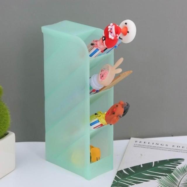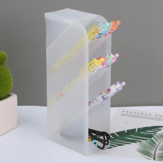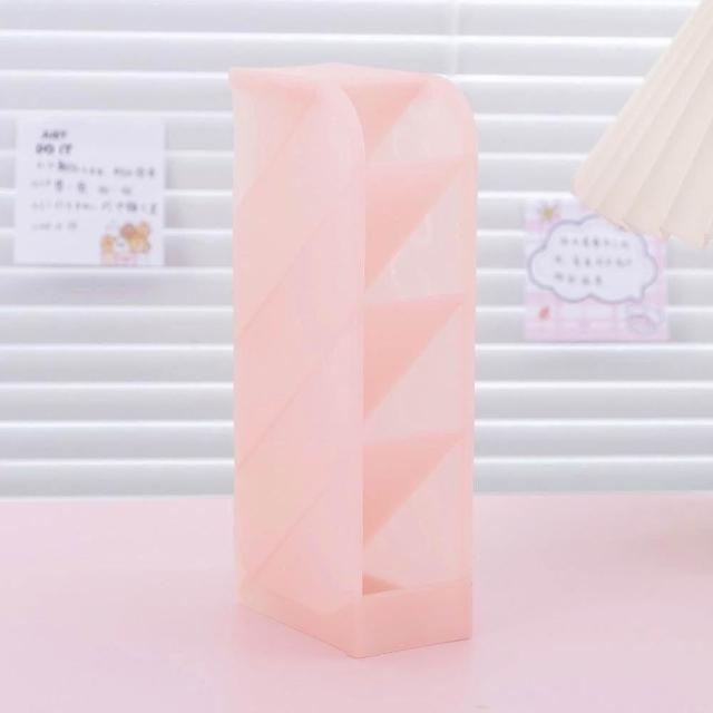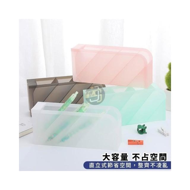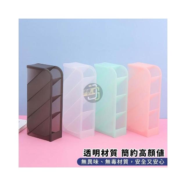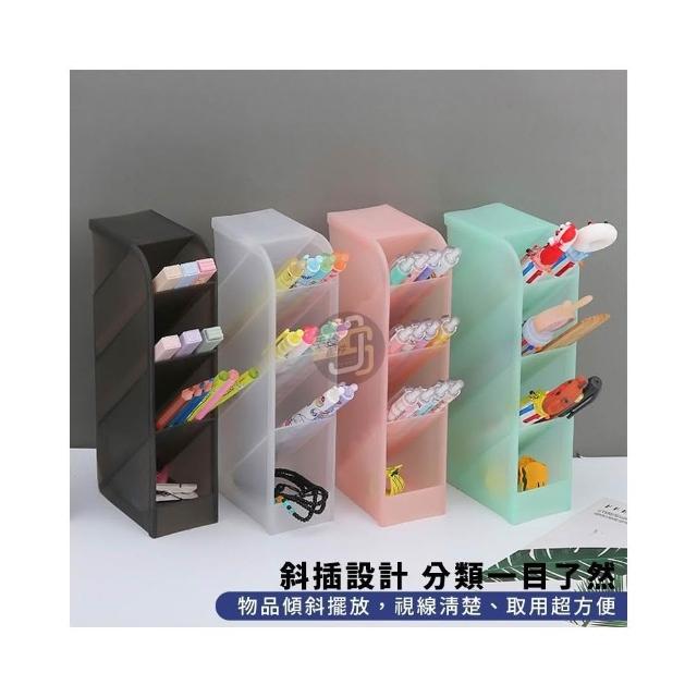 JS購物 簡約斜插式筆筒 四格筆筒 化妝刷盒 無印風 收納筒 多功能收納盒 無印風 磨砂質 透明文具筆筒 置物盒