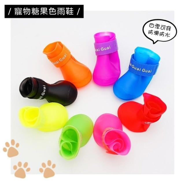 寵物雨鞋 狗雨鞋 時尚螢光果色寵物狗狗雨鞋 寵物防滑鞋 狗鞋 寵物外出用品 貓狗通用 雨衣