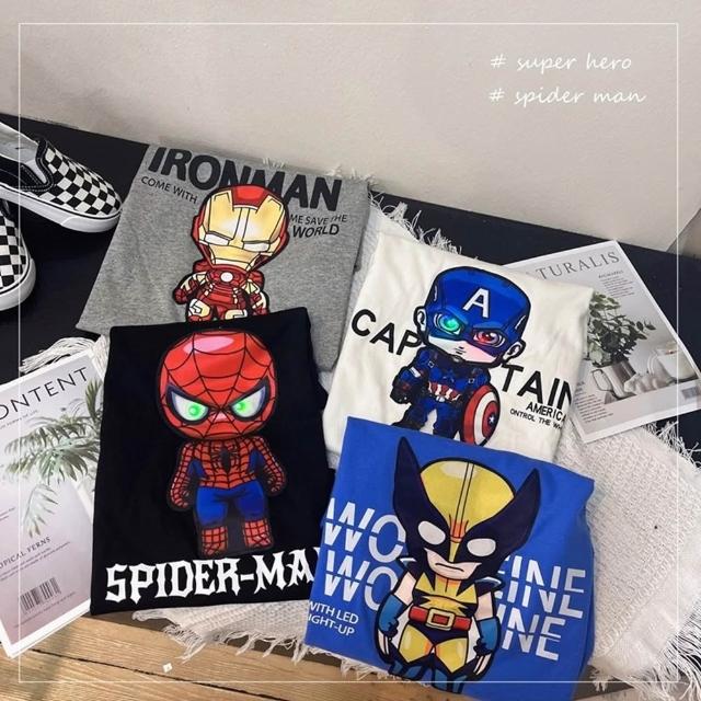 兒童短袖 發光童裝 亮燈童裝 閃燈童裝 兒童衣服 蜘蛛人童裝 兒童短T 童裝 夏款男童亮燈T短袖